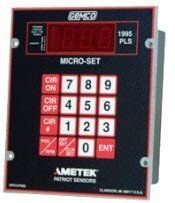 The Gemco 2500 Series PLS is a high-speed resolver based Programmable Limit Switch that monitors rotary machine position and provides discrete limit switch outputs. These outputs are updated at a much faster rate than can be accomplished using any conventional PLC. The 2500 Series uses a unique easy to understand programming sequence. The traditional number buttons have been replaced with a rotary knob and the main controller has a 2 x 24 vacuum fluorescent display along with four push-button keys for programming